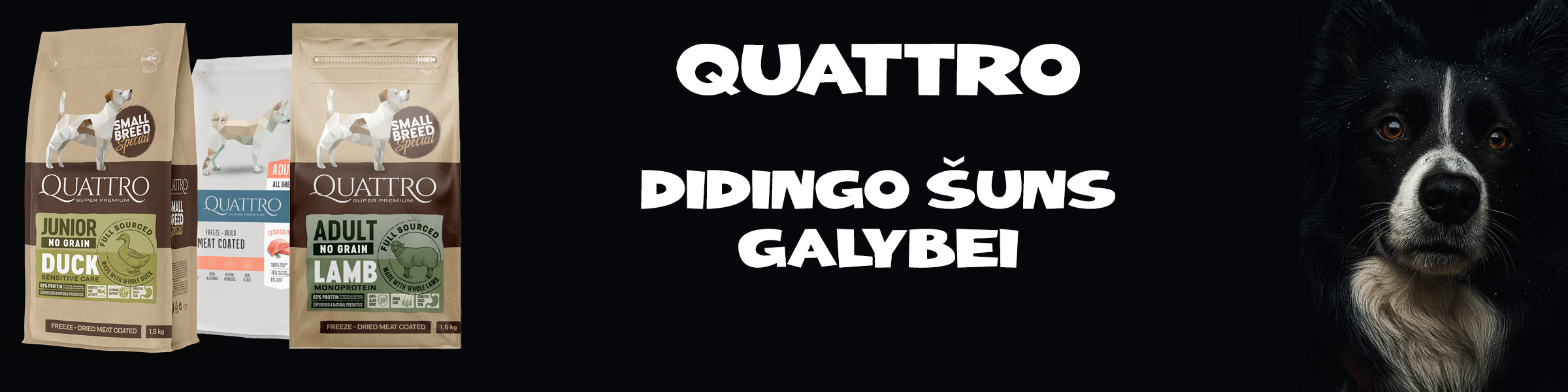 QUATTRO begrūdis visų veislių jaunų šunų pašaras su antiena